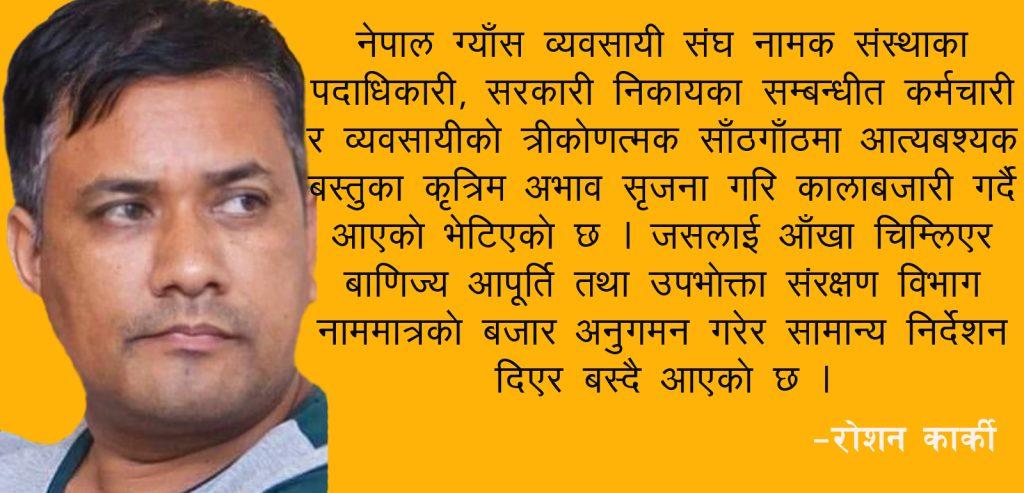 –रोशन कार्की अस्थीर सरकार र राजनीतिको मौका छोप्दै केही व्यवसायीहरुको योजनामा देशभर एकै पटक अत्यबश्यक बस्तुमा कृत्रिम अभाव सृजना गरेर उपभोक्तामाथी लुटधन्दा चलाउदै आएको पुरानै धन्दा हो । सो अबैधधन्दामा सरकारकै कर्मचारीदेखि मन्त्रीसम्मको भित्रि साँठगाँठबाटै खुलेआम रुपमा अत्याबश्यब बस्तुमा गरिने कृत्रिम अभाव सृजना गरेर उपभोक्ता ठगी गर्दा समेत सरकार मौन बस्नुले पनि पनि सो अबैधधन्दा … Continue reading कृत्रिम अभाव सृजनामा सरकारी कर्मचारीकै संलग्नता : अत्यावश्यक वस्तु गोदाममै लुकाए !!!