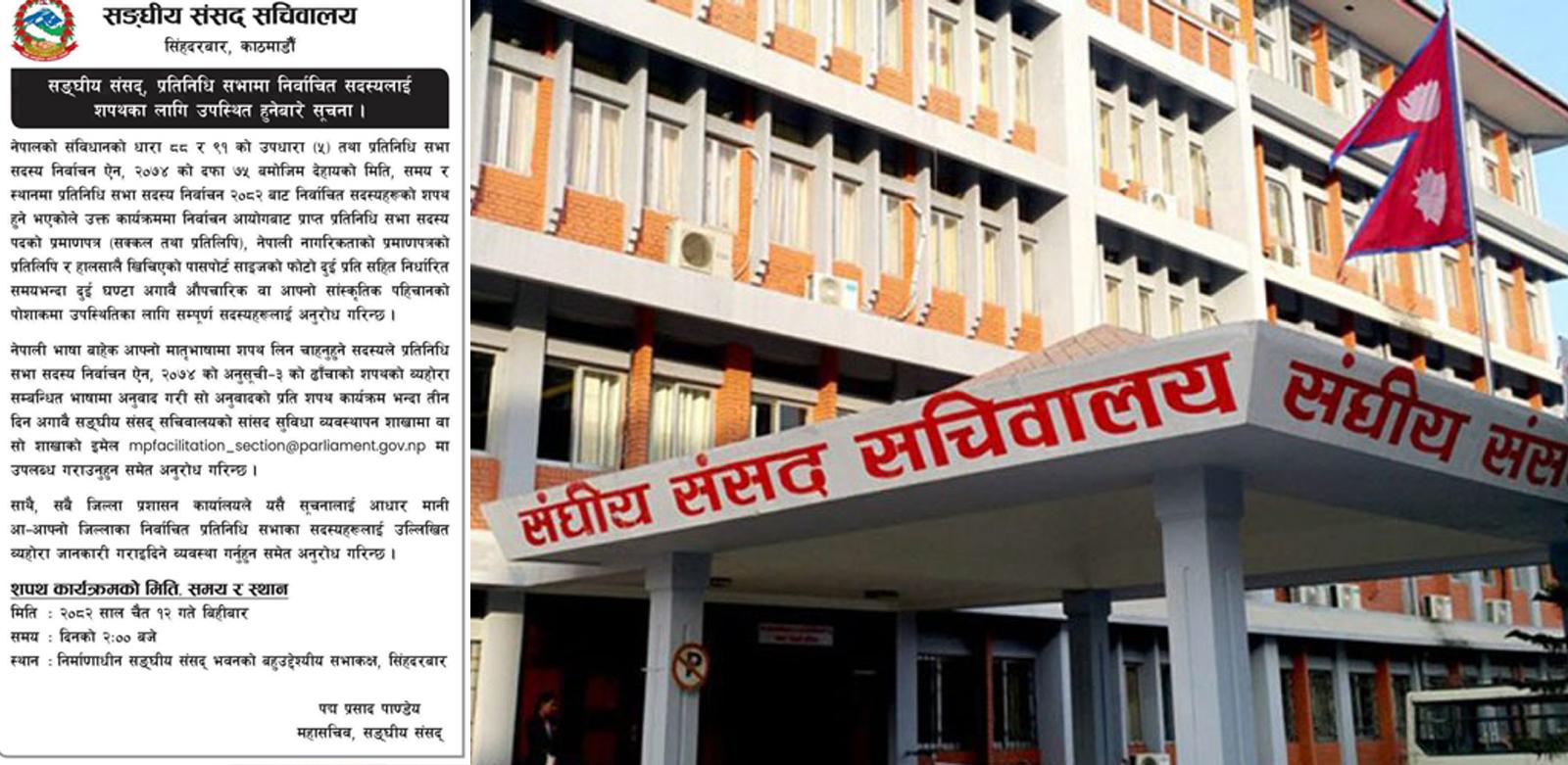 नवनिर्वाचित सांसदलाई शपथ ग्रहण चैत १२ गते गरिदै