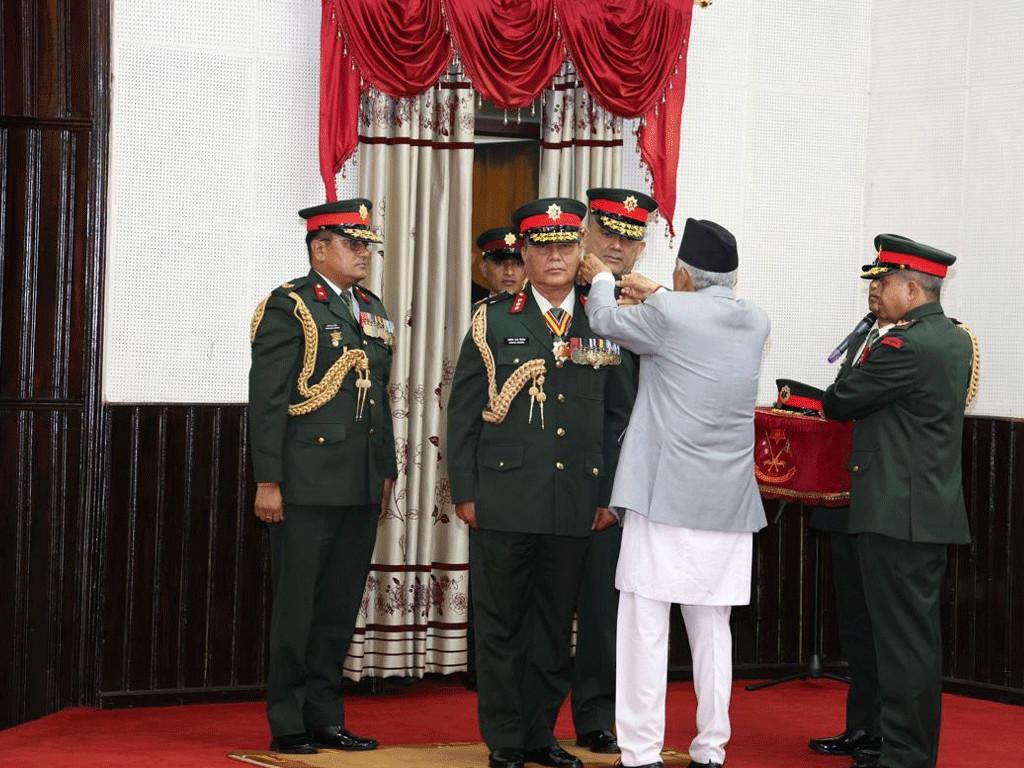 सो अवसरमा राष्ट्रपतिले प्रधानसेनापतिलाई दर्ज्यानी चिह्न प्रदान गरेका थिए । भदौ १२ गते सरकारको निर्णयअनुसार राष्ट्रपति पौडेलले सिग्देललाई प्रधानसेनापति नियुक्त गरेका थिए । शपथसँगै उनले आजदेखि प्रधानसेनापतिको रुपमा औपचारिक रुपमा काम सुरु गरेका छन् ।