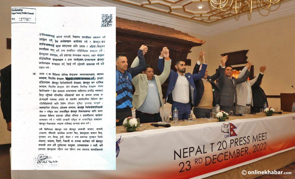 विवादित सेभेन थ्री स्पोर्टसले यो प्रतियोगिताका लागि क्यानसँग कमर्सियल र स्ट्टेजिक साझेदारीको सम्झौता गरेको छ । पछिल्लोपल्ट शुक्रबारका लागि निर्धारित प्रतियोगिता एक दिन सारेर क्यानले पुरस्कार राशी, स्थानीय ब्रोडकास्टरबारे निर्णय गर्यो, शुक्रबार दिउँसो पत्रकार सम्मेलन गरी भोलि खेल सुरु हुने बतायो । तर अहिलेसम्म राष्ट्रिय खेलकुद परिषद् (राखेप) ले अहिलेसम्म नेपाल टी–२० लिग खेल्ने विदेशी खेलाडीका लागि श्रम स्वीकृतिका लागि सिफारिस पत्र दिएको छैन ।