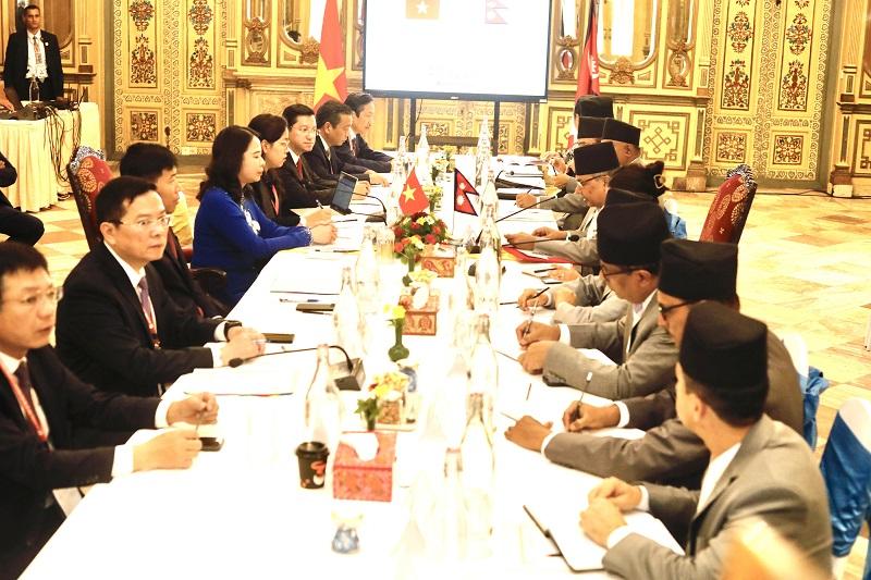 काठमाडौं, ८ भदौ । उपराष्ट्रपति रामसहायप्रसाद यादव र भियतनामकी उपराष्ट्रपति भो थी आन्ह सुआनबीच आईतबार शिष्टचार भेटबार्ता भएको छ । काठमाण्डौमा रहेको होटल याक एन्ड यतीमा भएको सो भेटवार्तामा व्यापार, लगानी, जलविद्युत्, पर्यटन र सांस्कृतिक सहकार्यका विषयमा छलफल भएको बताइएको छ । बैठकपछि आयोजित संयुक्त पत्रकार सम्मेलनमा परराष्ट्र मन्त्रालयका सहसचिव प्रकाश अधिकारीले वार्तामा नेपाल–भियतनाम सम्बन्ध र अन्तर्राष्ट्रिय सहकार्यका विषयमा समग्र छलफल भएको बताउनु भएको छ । उहाँका अनुसार दुवै पक्षले मित्रता, सद्भावना र द्विपक्षीय सम्बन्धलाई बलियो बनाउने प्रतिबद्धता व्यक्त गर्नुभएको छ ।
