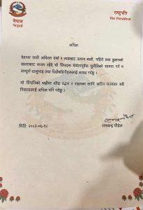 उहाँले विपद्मा धैर्यतापूर्वक चुनौतीको सामना गर्न समेत सर्वसाधारणलाई आग्रह गर्नुभएको सो विज्ञप्तिमा उल्लेख गरिएको छ । राष्ट्रपति पौडेलले यस विपत्तिको घडीमा शीघ्र उद्धार र राहतका लागि खटिन राज्यका सबै निकायलाई समेत अपिल गर्नुभएको छ देशभर जारी अविरल वर्षा र त्यसबाट उत्पन्न बाढी, पहिरो तथा डुबानको खतराबाट सजग रहँदै यो विपद्मा धैर्यतापूर्वक चुनौतीको सामना गर्न सवैले आ–आफ्नो क्षेत्रबाट सहयोग गर्न समेत सवैमा आग्रह गरेको उल्लेख गरिएको छ ।