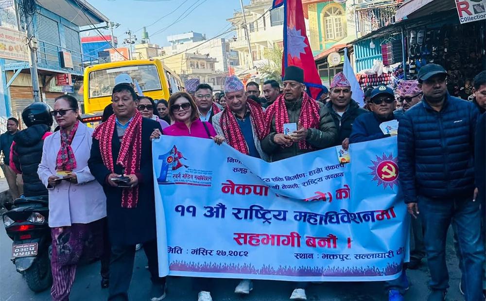 काठमाडौँ । नेकपा एमालेले एघारौँ राष्ट्रिय महाधिवेशनमा सहभागिताका लागि घरदैलोमा पुगेर निमन्त्रणा दिने कार्य सुरु गरेको जनाइएको छ । एमाले उपमहासचिव प्रदीप ज्ञवालीले अभियान थालनी गर्दै बुधबार बिहान काठमाडौँ–२ अन्तर्गत वीरेन्द्र चोक, काँडाघारी क्षेत्रबाट पुगेर जनतासँग भेटघाट गर्नुभएको बताइएको छ । यो कार्यको संयोजन पोलिटब्युरो सदस्य तथा पूर्वसञ्चारमन्त्री पार्वत गुरुङले गर्नुभएको थियो । घरदैलो कार्यक्रममा पार्टीका केन्द्रीय नेताहरूका साथै बागमती प्रदेश अध्यक्ष कैलाशप्रसाद ढुङ्गेल लगायतका नेताहरू सहभागी छन् । एमालेको एघारौँ राष्ट्रिय महाधिवेशन मंसिर २७ बाट काठमाडौंमा शुरु हुँदै छ । महाधिवेशनमा ३ लाख बढीको सहभागिता जुटाउने एमालेले तयारी गरेको छ ।