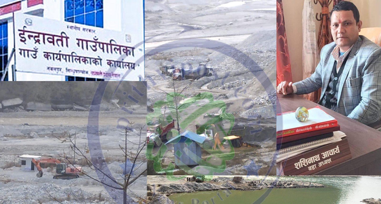 यसरी विद्यमान ऐनलाई लत्याउदै सिन्धुपाल्चोकको इन्द्रावती गाउँपालिकामा मात्रै नदी आसपास ९ वटा त्यस्ता उद्योग रहेका छन् । कुनै समयको निर्मल इन्द्रावतीको नदीकिनार अहिले गिट्टी र बालुवा खन्न आउने ट्रक र एक्साभेटरका डोजरले भरिभराउ भएका छन् भने सो क्षेत्रमा १५–२० फिट गहिरो खाडल समेत बनाएका छन् ।