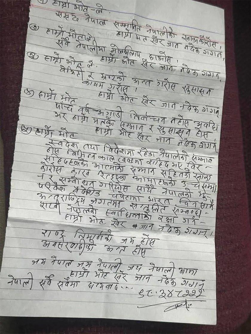 मतपेटिकामा भेटिएको सो पत्रमा यस्तो लेखिएको छ :