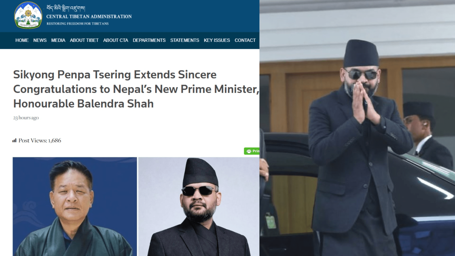 काठमाडौं । नवनिर्वाचित प्रधानमन्त्री बालेन साहलाई तिब्बती निर्वासित धार्मिक नेता दलाई लामाको भारतस्थित धर्मशालाबाट निर्वासित केन्द्रीय तिब्बती प्रशासनका प्रमुखले — विस्तृतमा